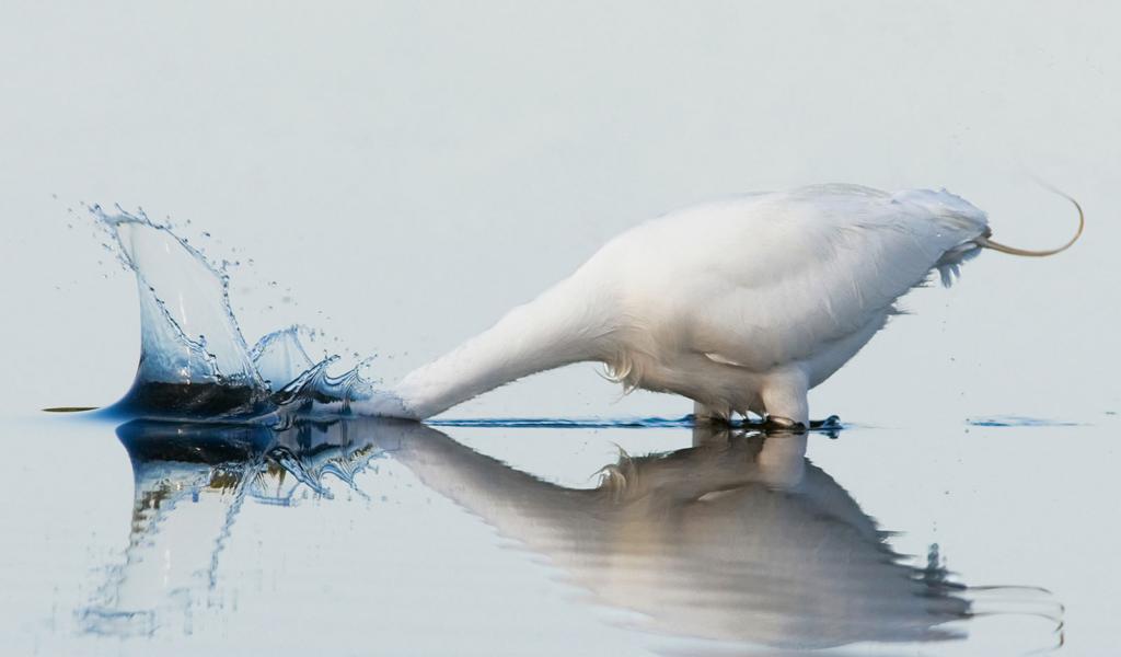Обои Белый гусь купается