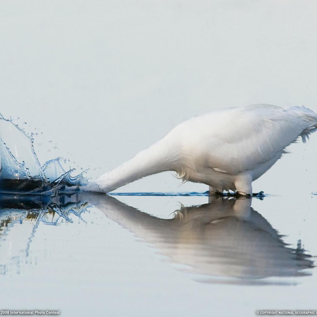 Обои Белый гусь купается