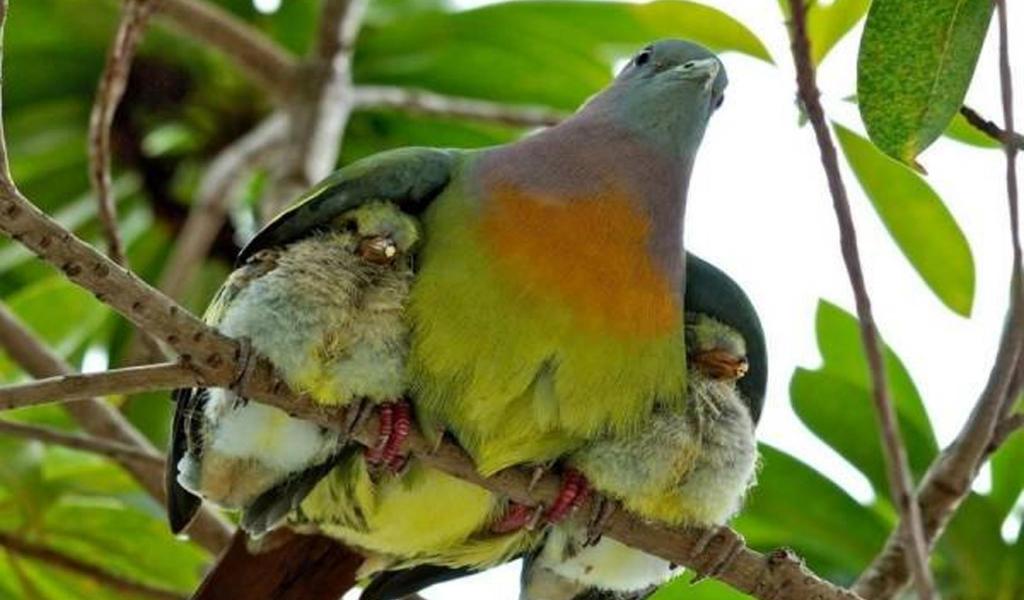 Обои Птица прикрыла птенцов