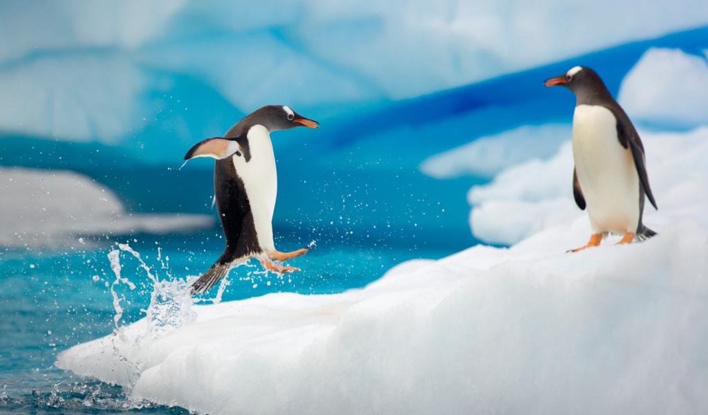 Обои Пингвин выпрыгнул из воды