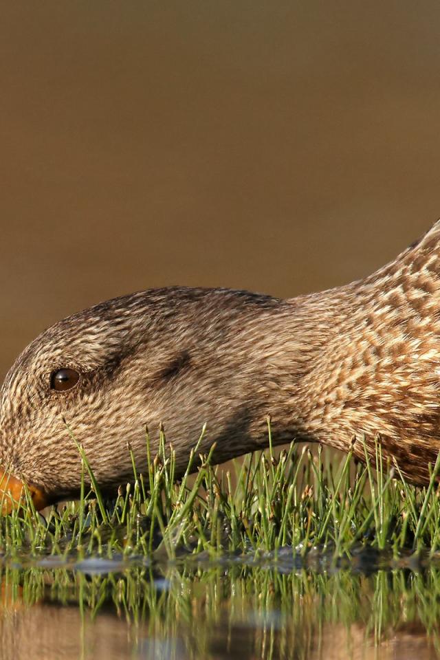 Обои Утка пьет воду