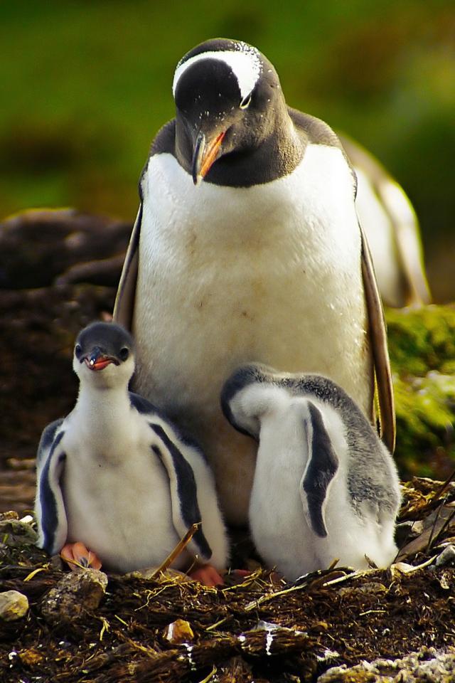 Обои Пингвин с птенцами