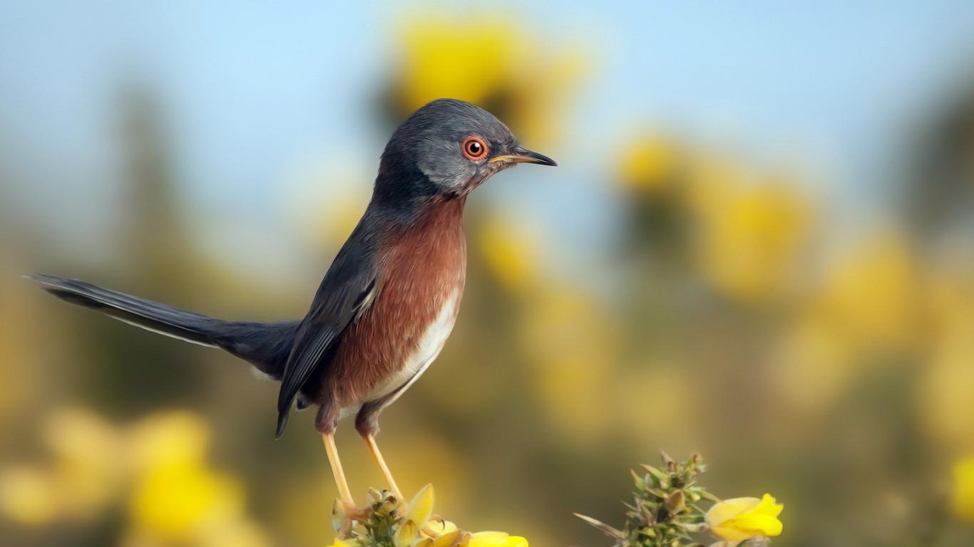 Обои Маленькая птичка на цветке