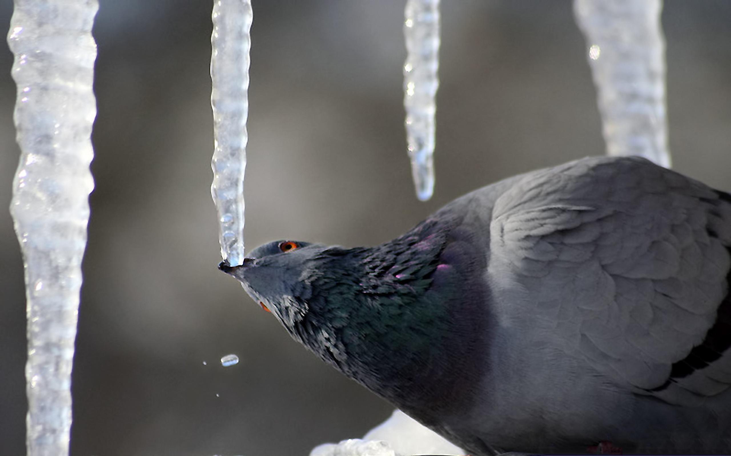 Обои Голубь клюёт сосульку