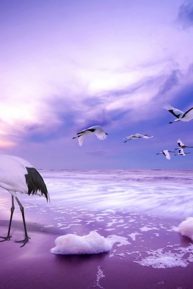 Обои Журавли на пляже