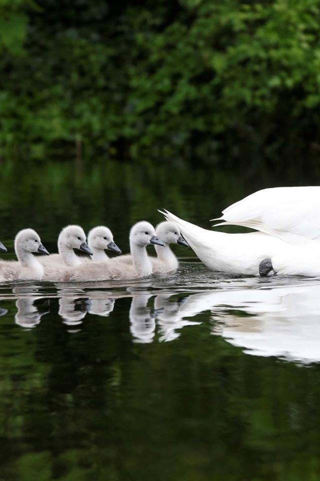 Обои Выводок плывет за мамой