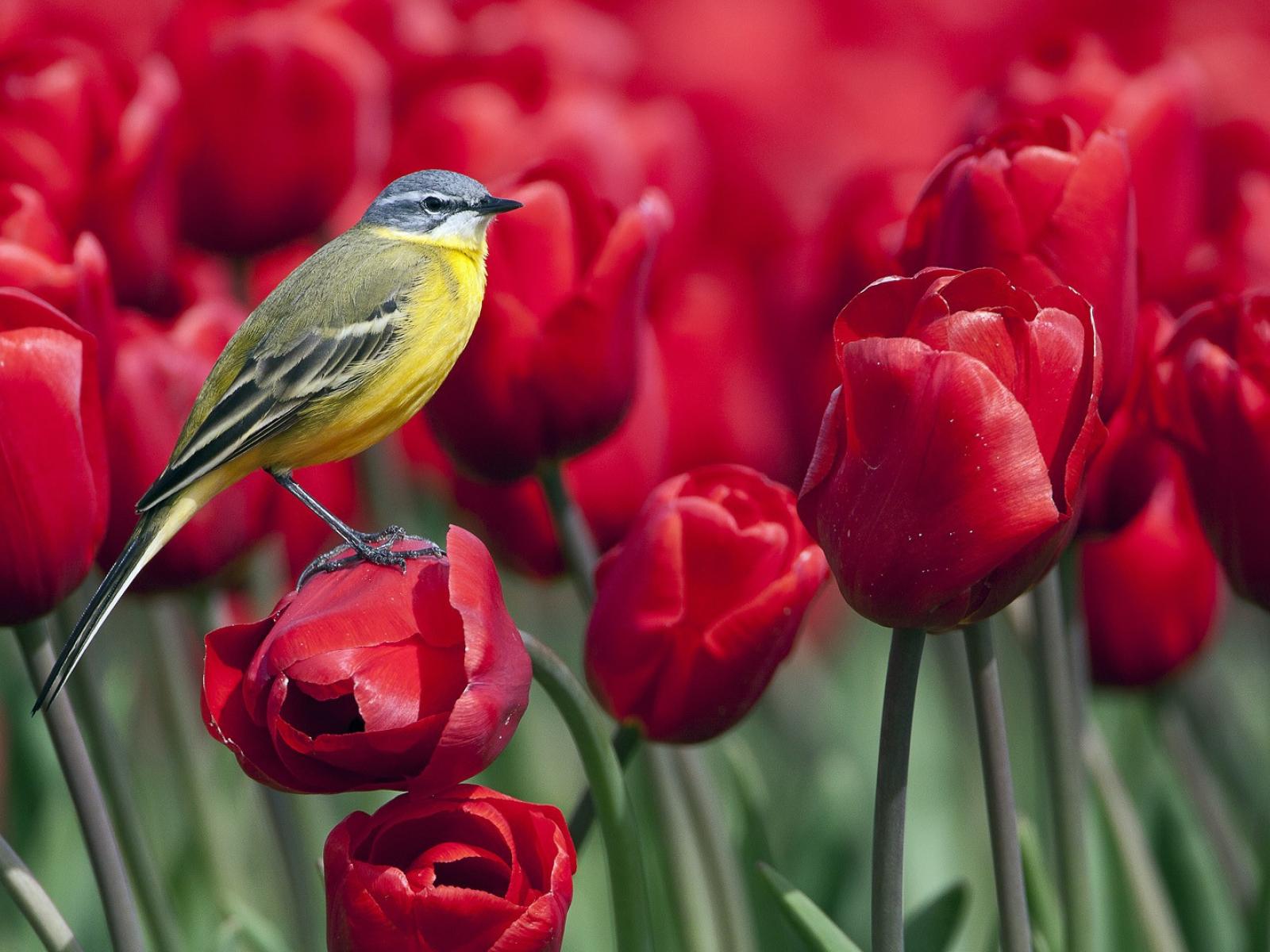 Обои Синица сидит на тюльпане