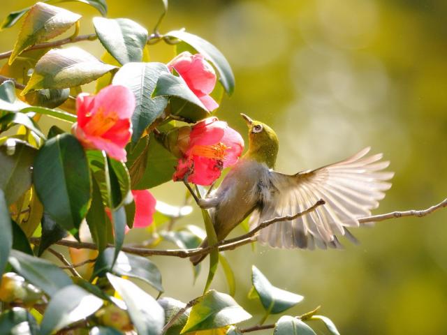 Обои Колибри на розовых цветах