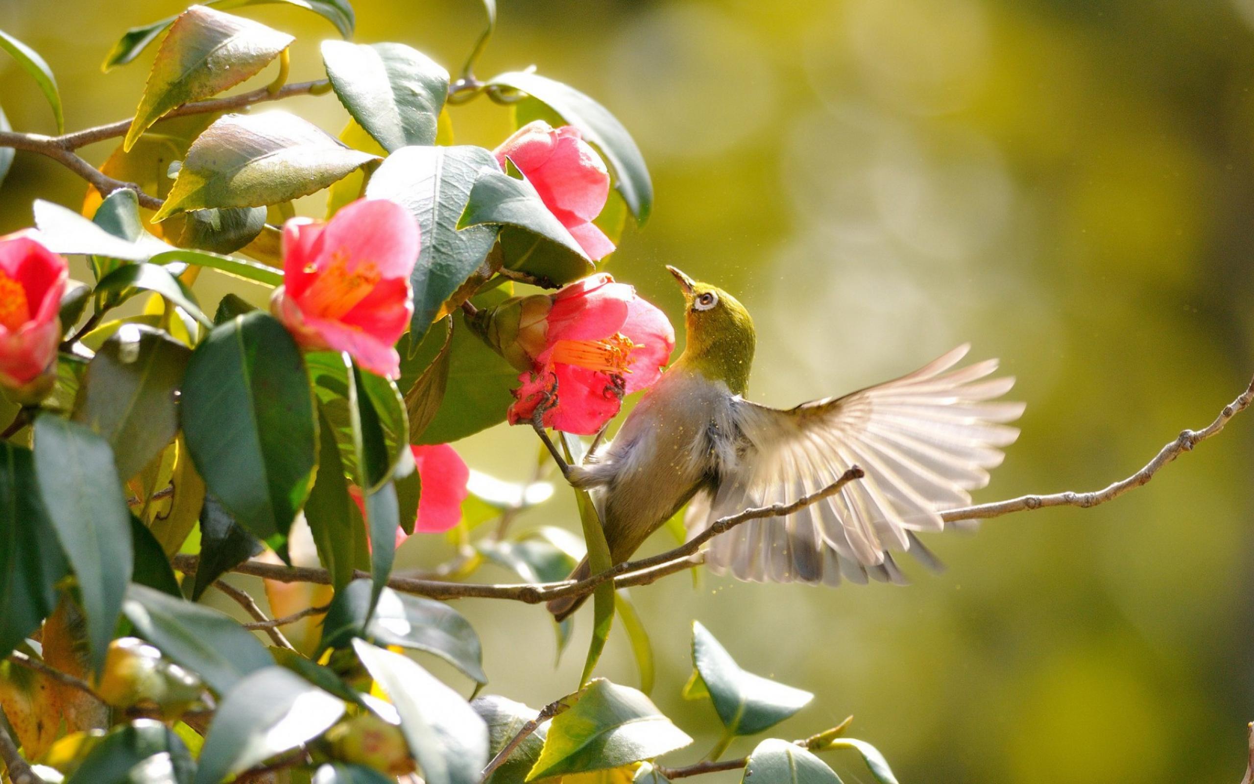 Обои Колибри на розовых цветах