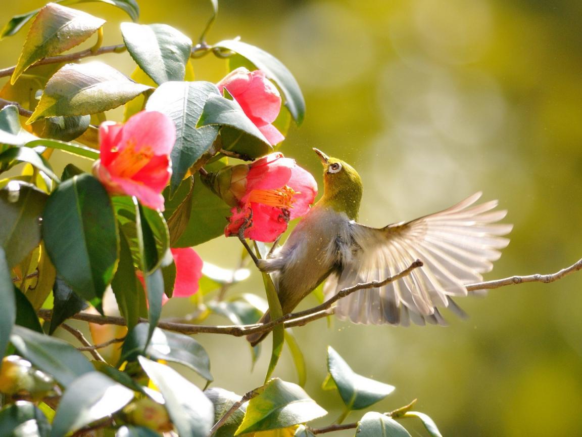 Обои Колибри на розовых цветах