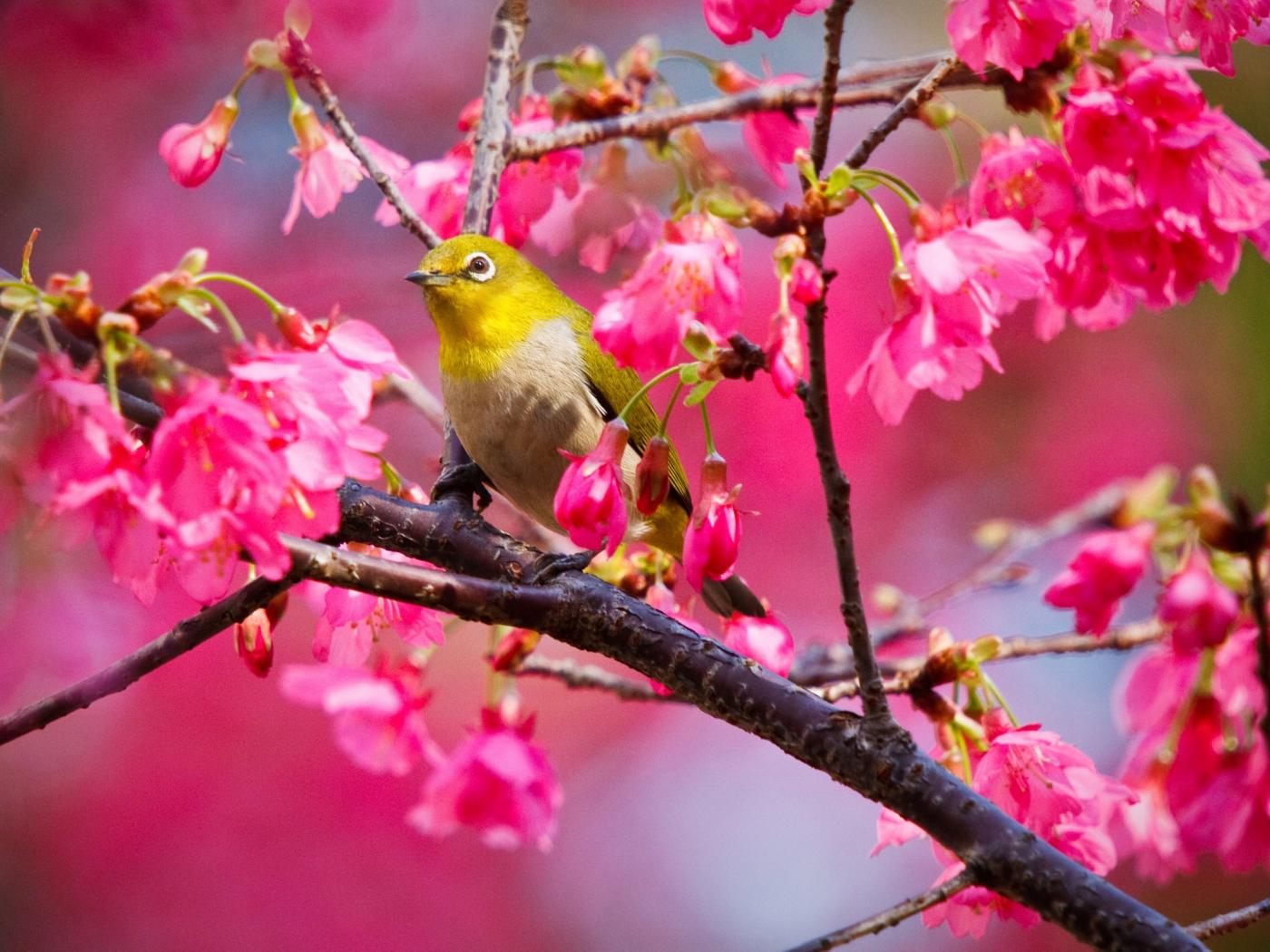Обои Горная вишневая птичка
