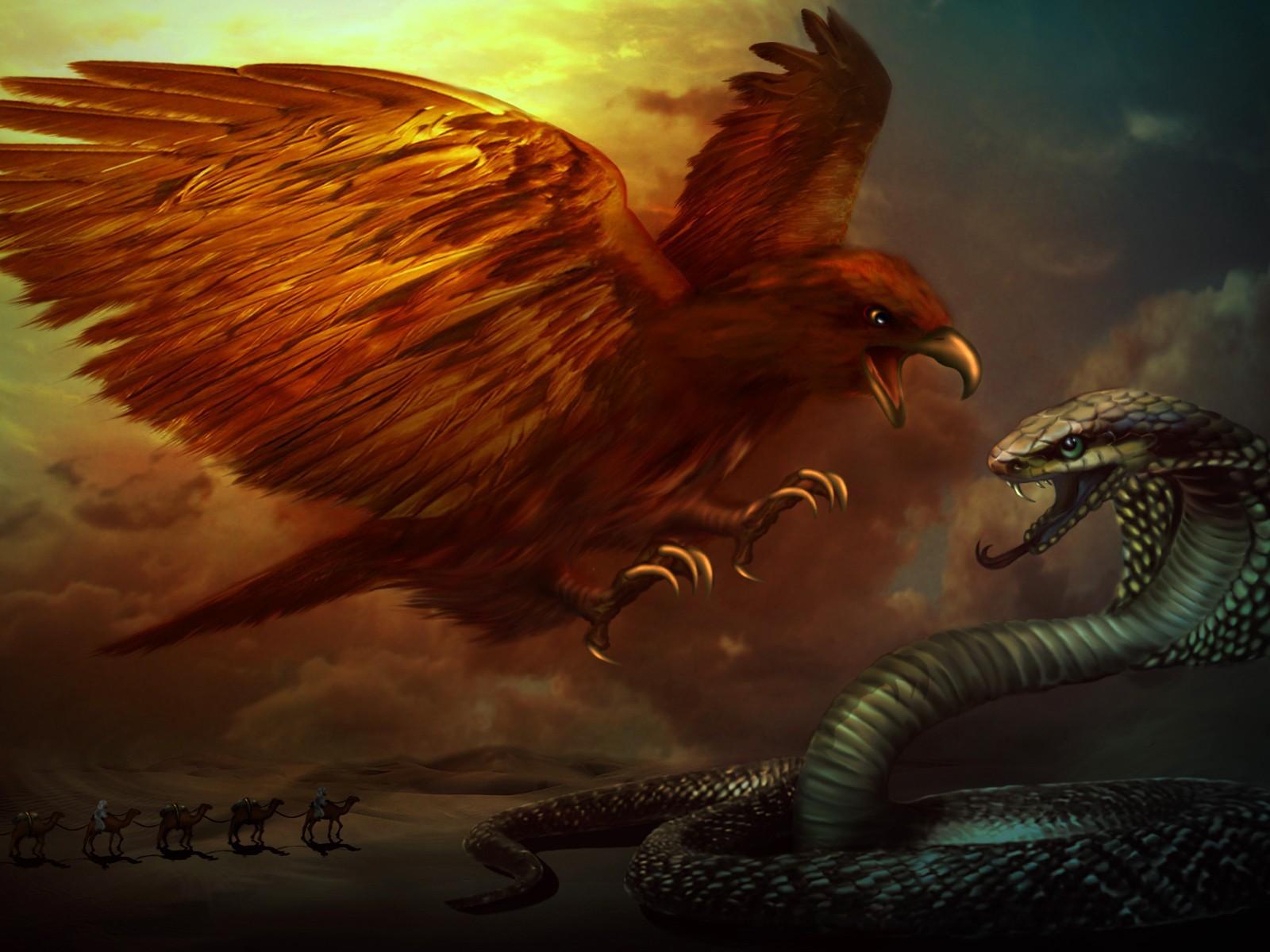 Обои Птица нападает на кобру