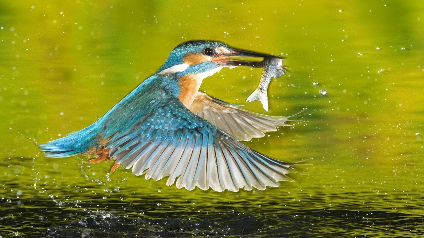 Обои Птица поймала рыбу