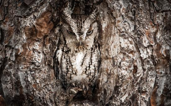 Обои Сова в дупле дерева