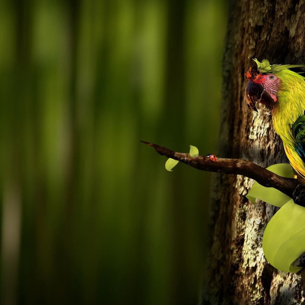 Обои Попугай на ветке