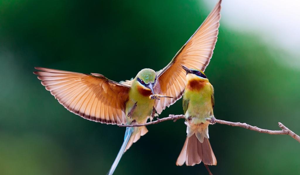 Обои Птица кормит птенца