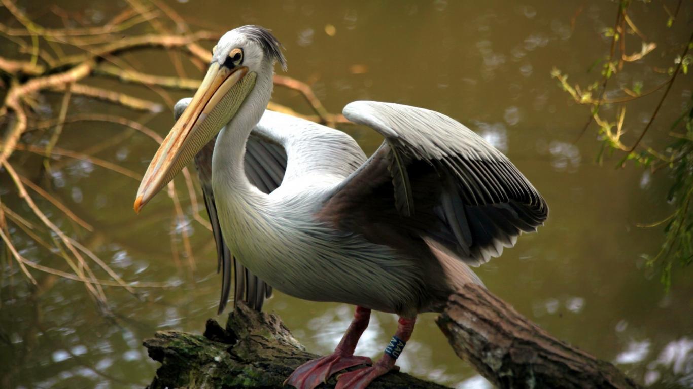 Обои Пеликан на бревне
