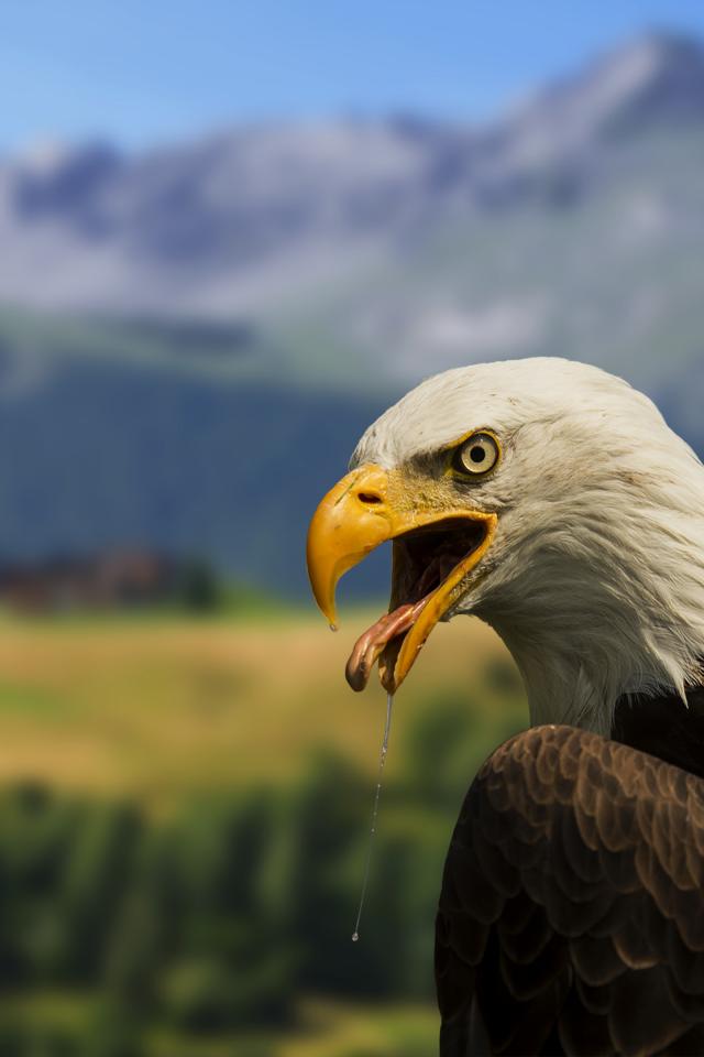 Обои Белоголовый орлан на фоне гор