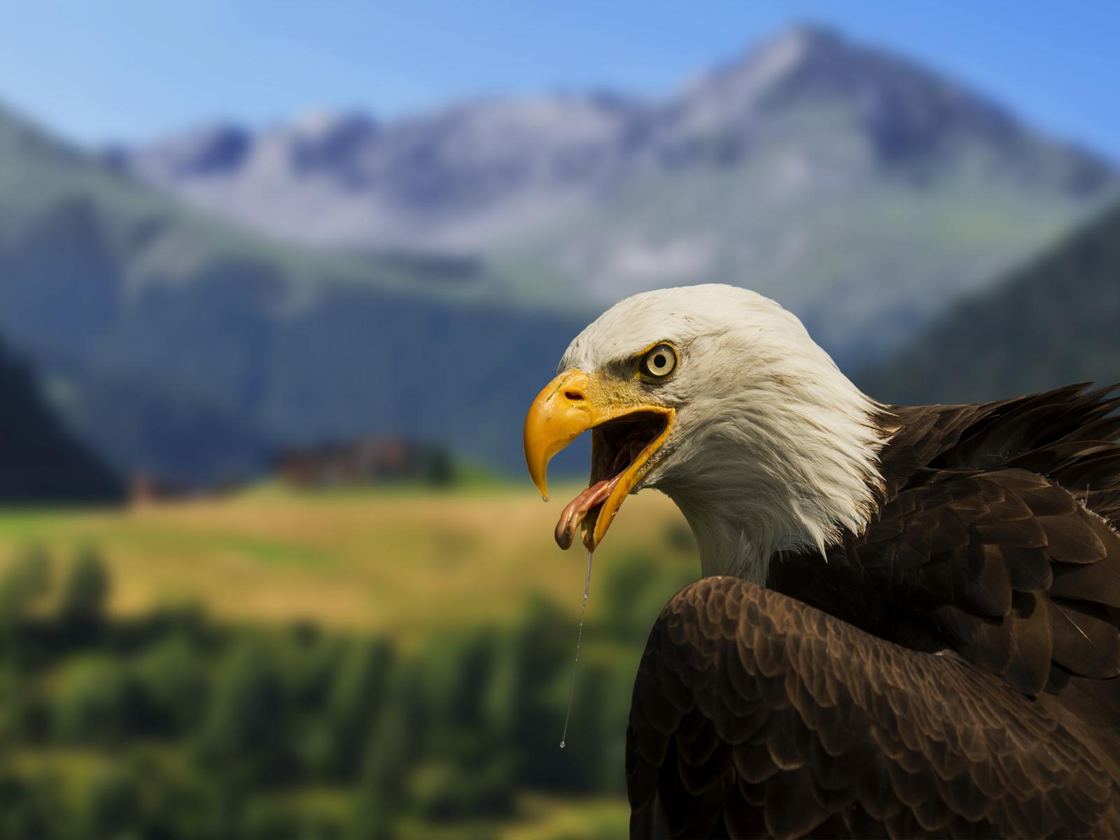 Обои Белоголовый орлан на фоне гор