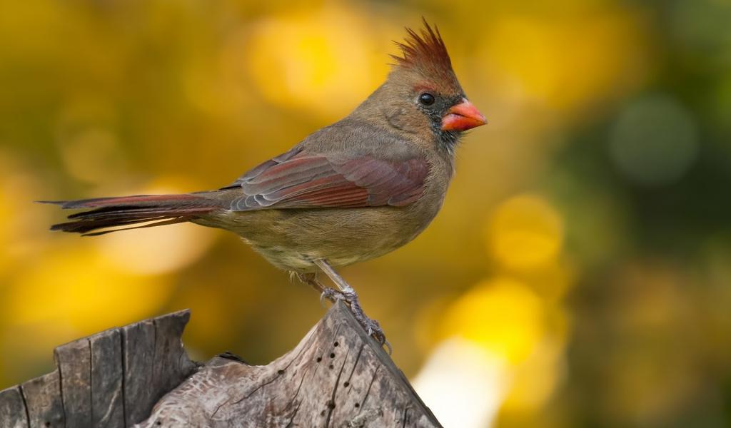 Обои Птица Кардинал на пне