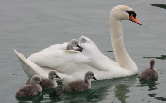 Обои Лебедь со своими детьми