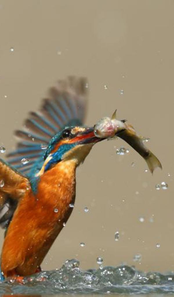 Обои Птица поймала рыбу