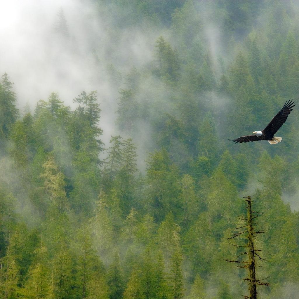 Обои Орел парит над лесом
