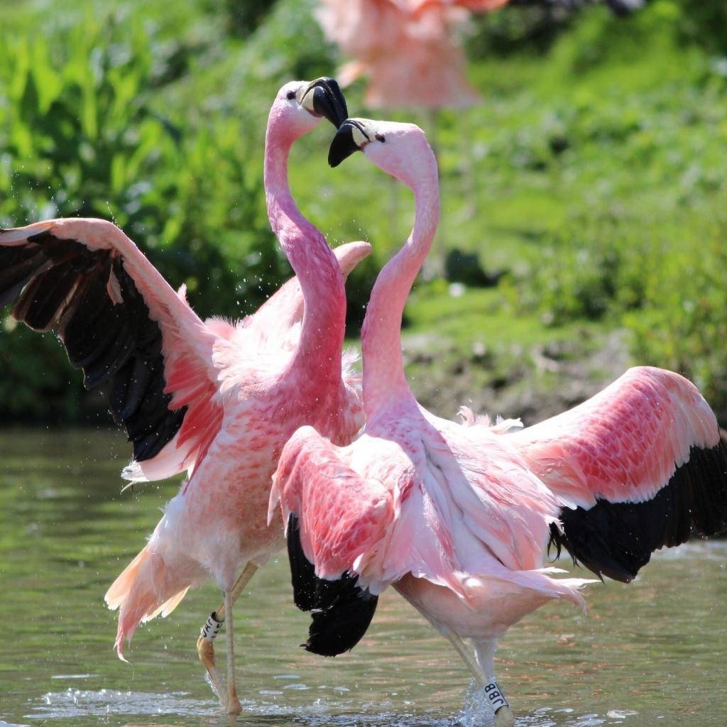 Обои Розовые фламинго танцуют