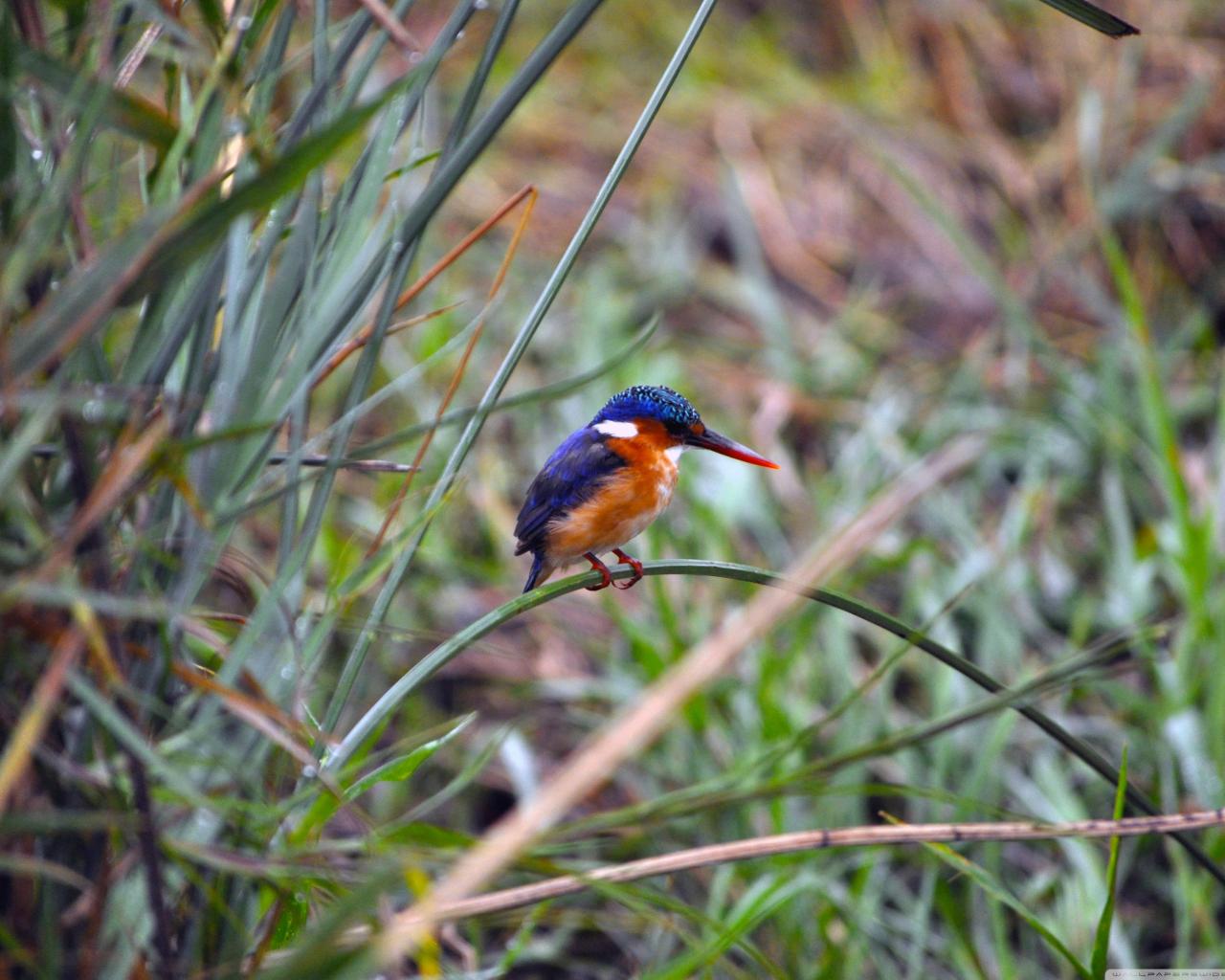 Обои Зимородок с красным клювом