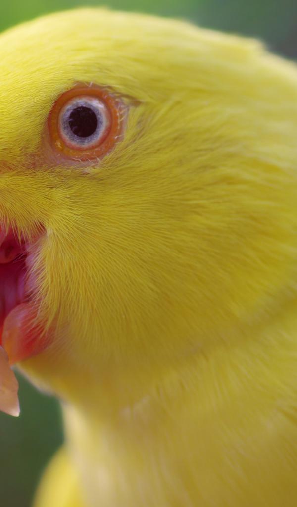 Обои Желтый попугай Ара с синими перьями по краю крыла