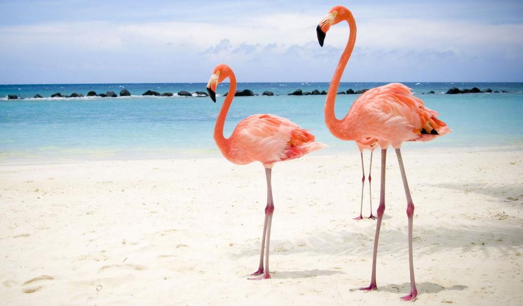 Обои Розовый фламинго на берегу