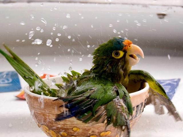 Обои Купающийся попугай