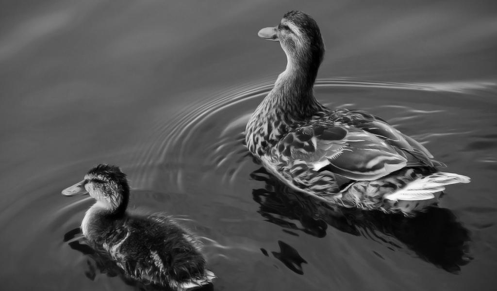 Обои Утка и утенок