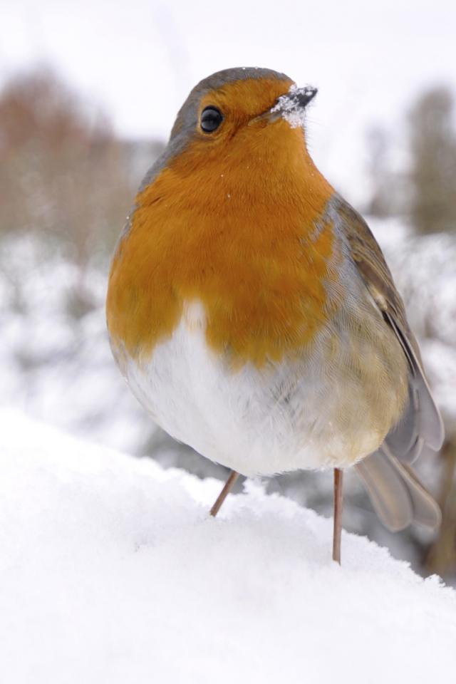 Обои Птичка на снегу