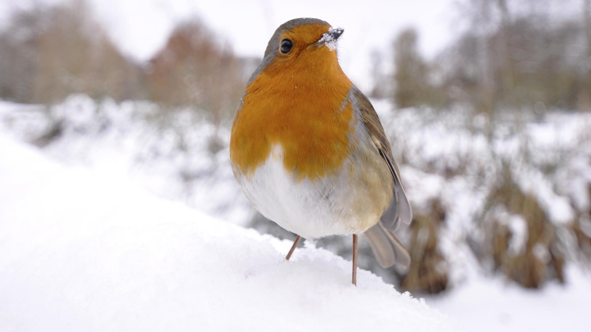 Обои Птичка на снегу