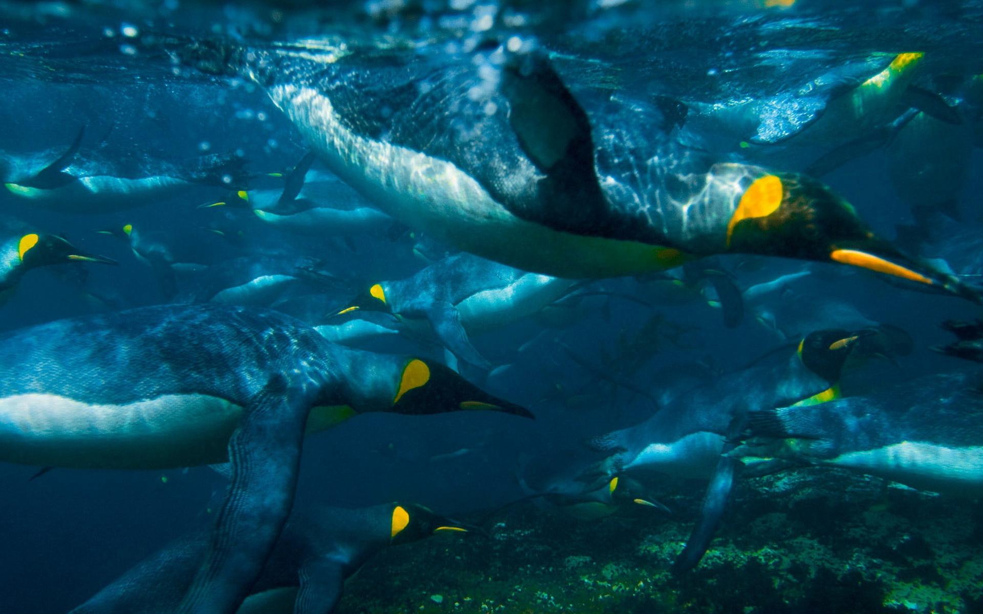 Обои Плывущие пингвины