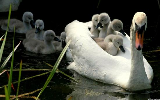 Обои Мама лебедь с детьми