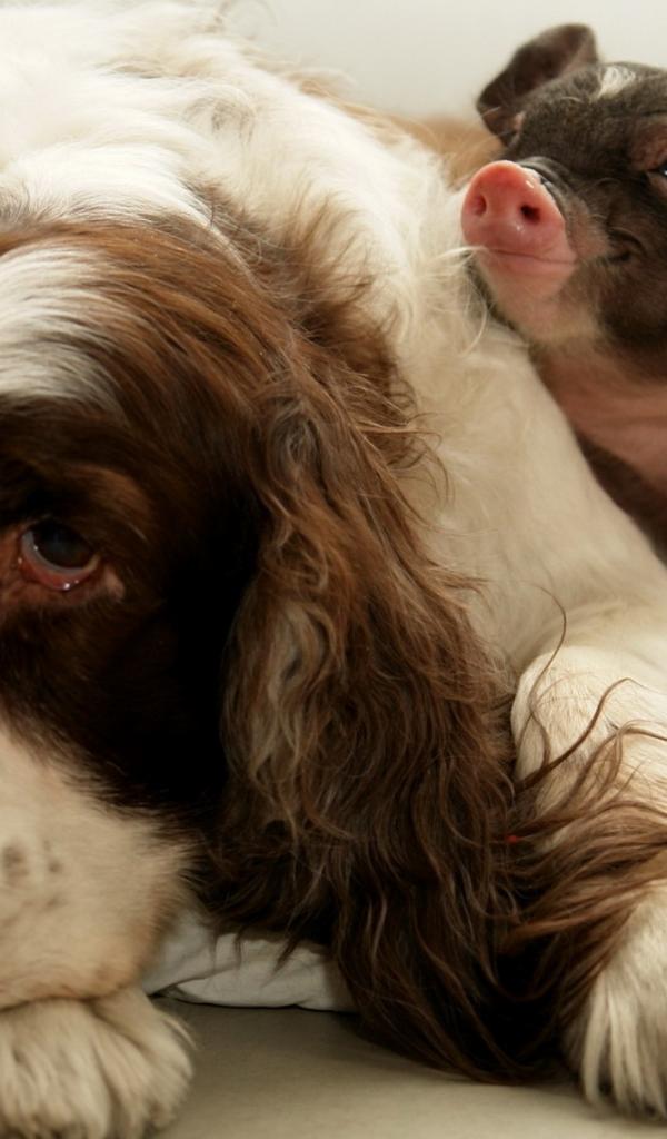 Обои Собака и поросенок
