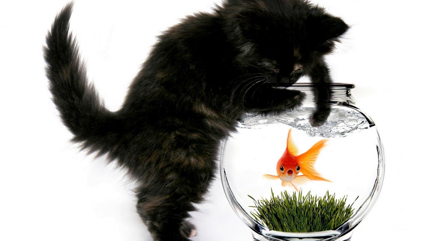 Обои Кошка и рыбка