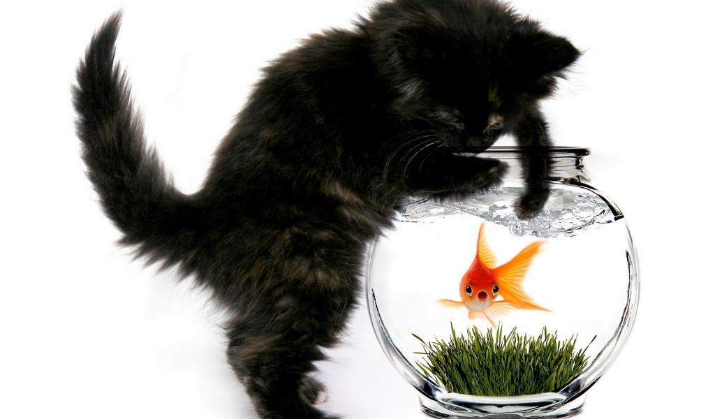 Обои Кошка и рыбка