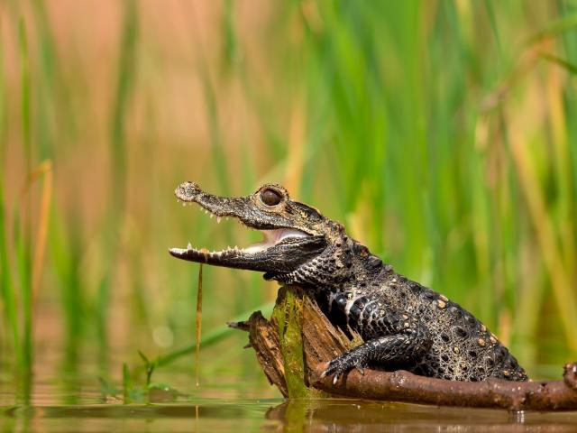 Обои Молодой крокодил в болоте