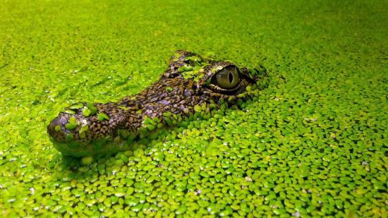 Обои Крокодил маскируется в водных растениях