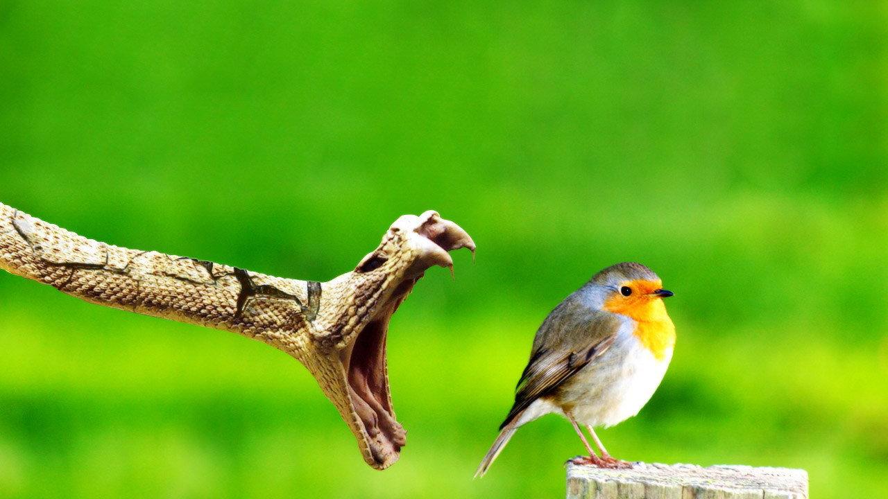 » Обои Змея ловит птицу