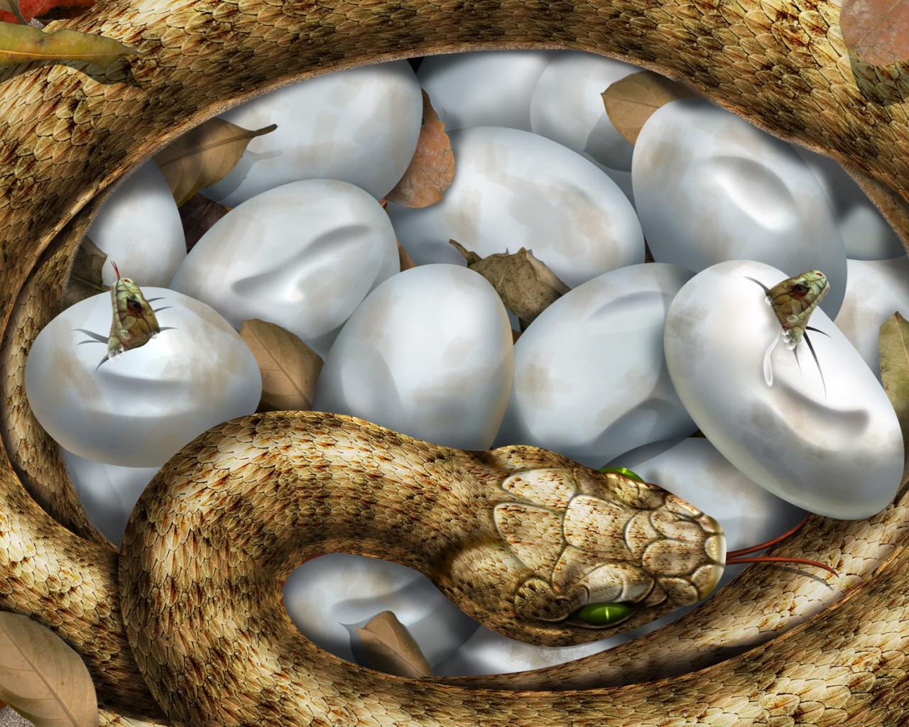 » Обои Змея и ее потомство