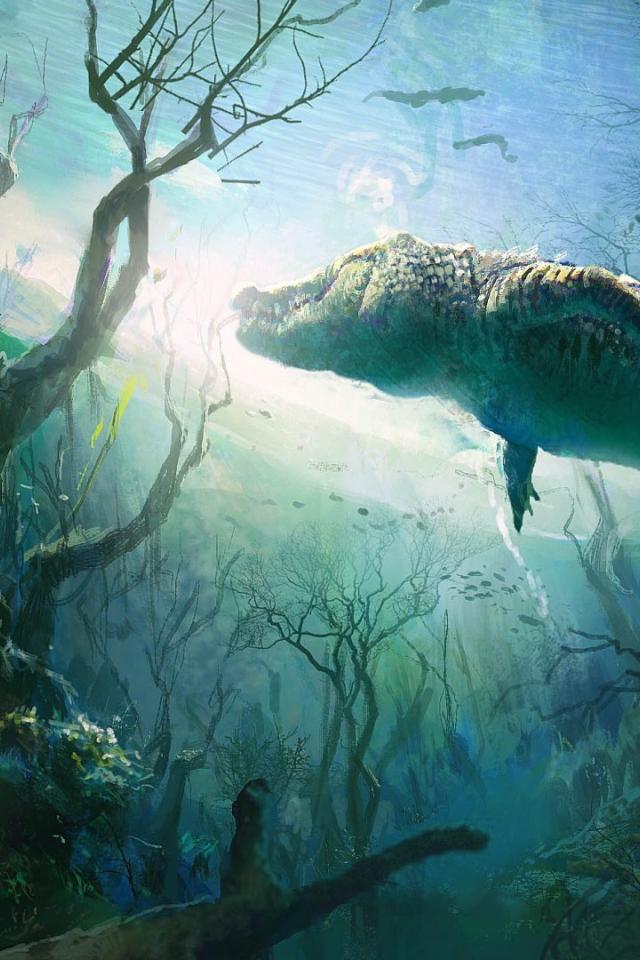 Обои Крокодил под водой