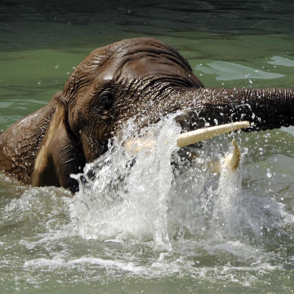 Обои Слон плывет в воде