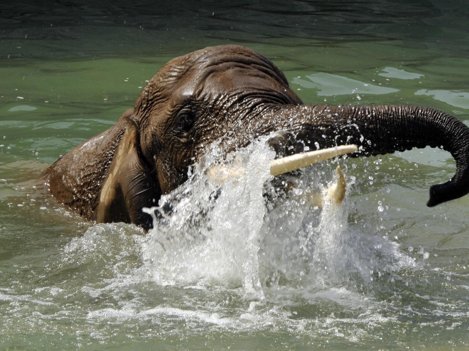 Обои Слон плывет в воде