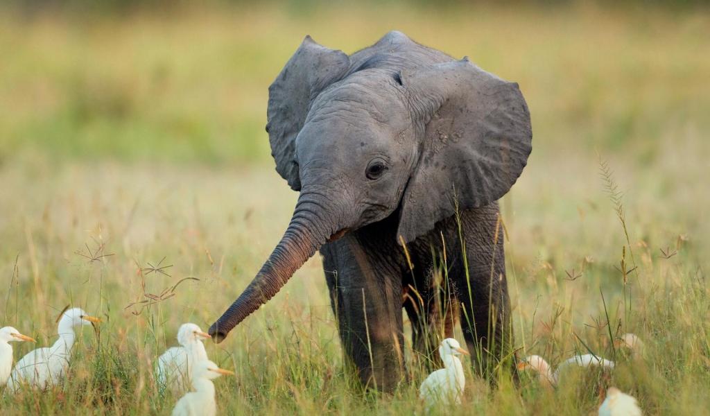 Обои Слоненок в окружении утят