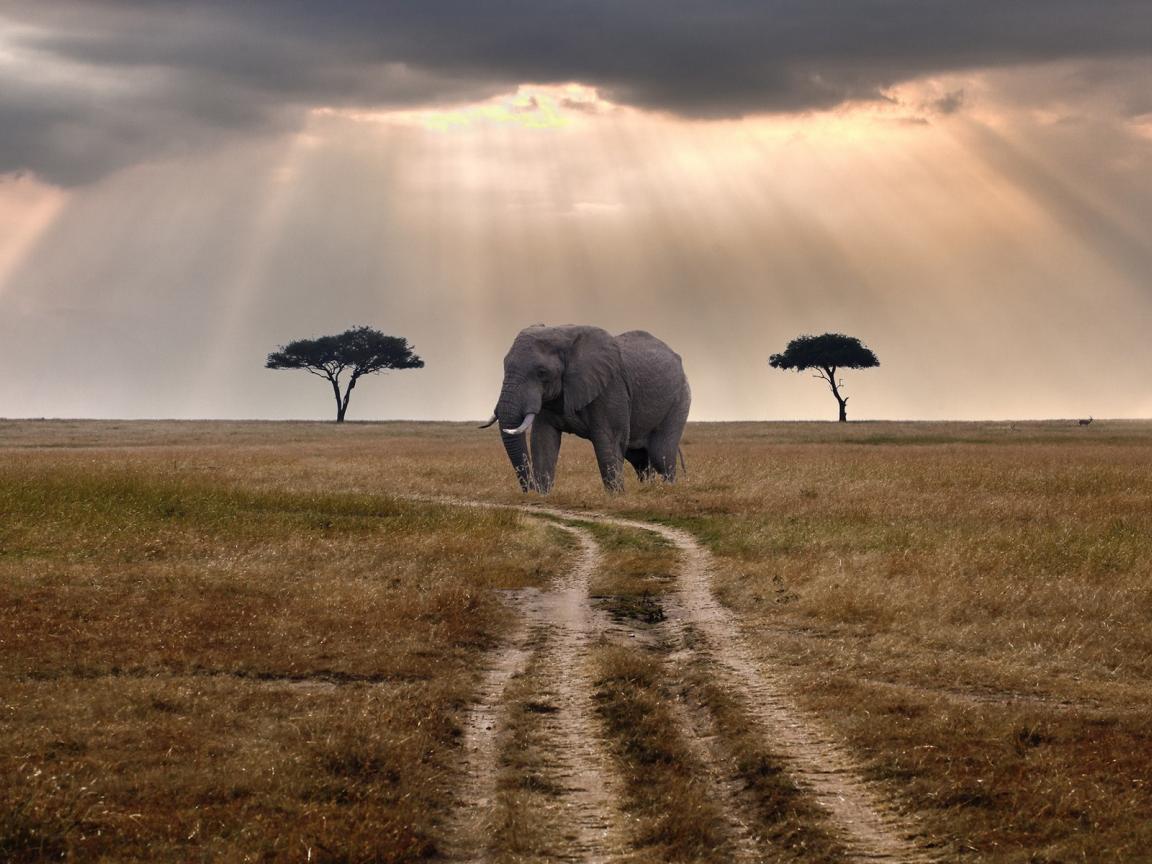 Обои Слон стоит у грунтовой дороги