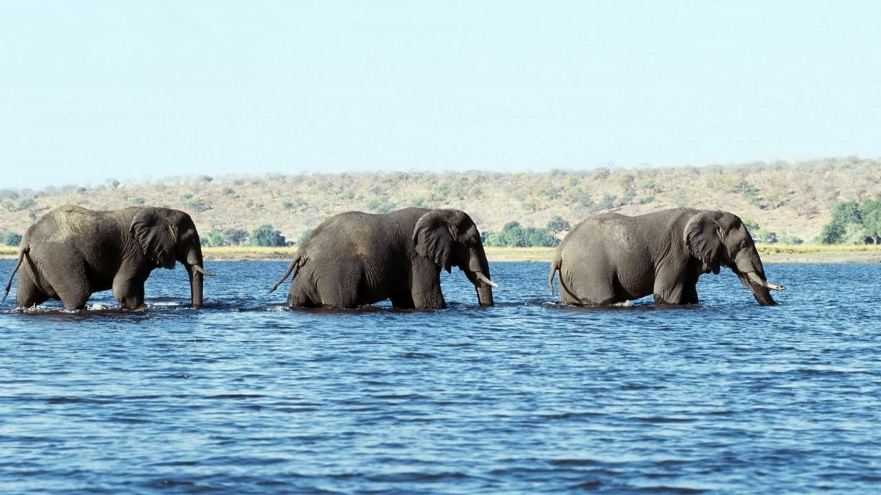 Обои Слоны в воде